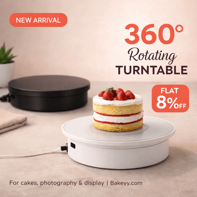 Step-by-step guide to using a cake turntable for smooth, professional buttercream frosting at home. Covers crumb coat, scraper technique, textured finishes, and troubleshooting — with tools from Bakeyy.com.