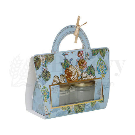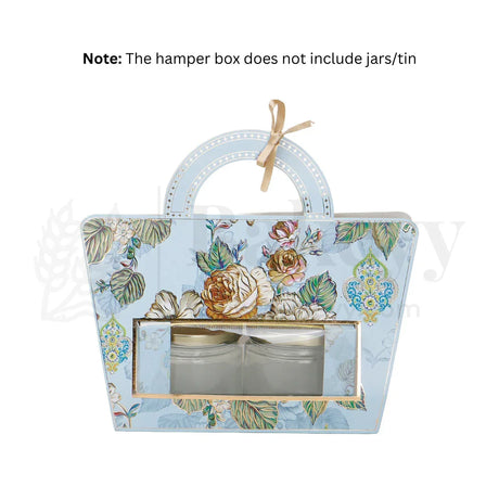 10.5x3.5x9.5 Inches | Floral Printed Light Blue Colour Hamper Box with Handle - Pack of 10