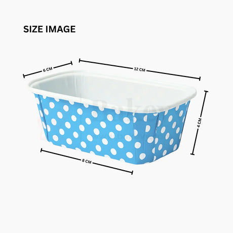 Rs. 299.00Rs. 499.00Unit price /Unavailable 100g Bake and Serve Rectangle Mould | Blue Polka Dot Design Pack of 50