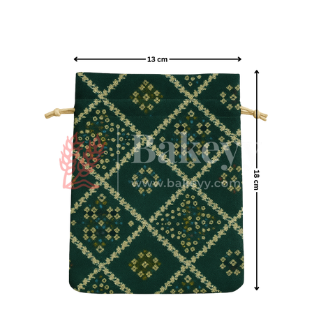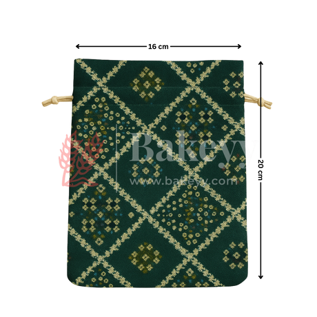 Bandhini Print Potli Bag with Drawstring – Festive Gift Pouch | Dark Green | Pack of 10