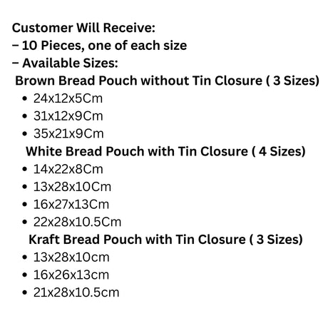 Bread Pouch Sample Pieces ( 10 Sizes) Sample Pieces