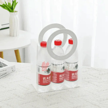 Transparent Bags With Leather Style White Colour Handles | Pack of 12