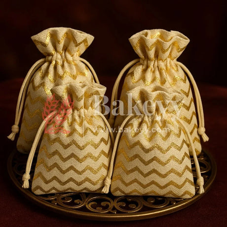 Foam Jute Potli Bag with Golden Top Border| Pack of 25