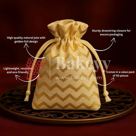 10x14 Cm | Gold Foiling Jute Potli Bags | Pack of 50