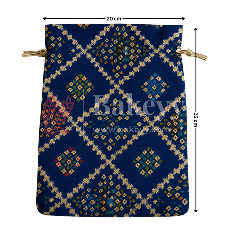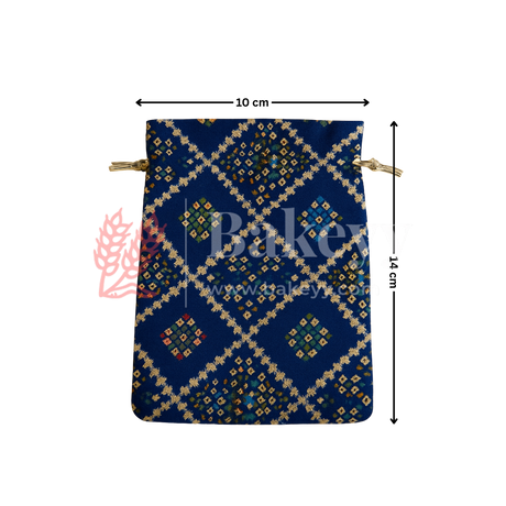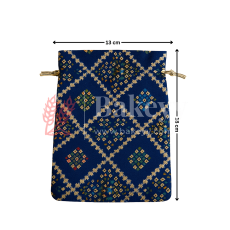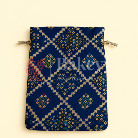 Bandhini Print Potli Bag with Drawstring – Festive Gift Pouch | Navy Blue | Pack of 10