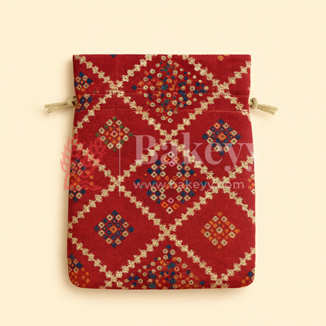 Bandhini Print Potli Bag with Drawstring – Festive Gift Pouch | Red | Pack of 10