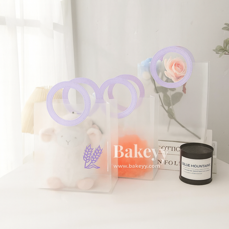 Transparent Bags With Leather Style Lavender Colour Handles | Pack of 12