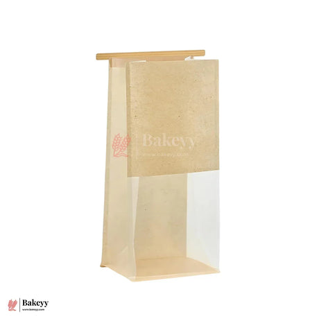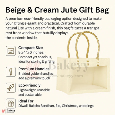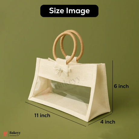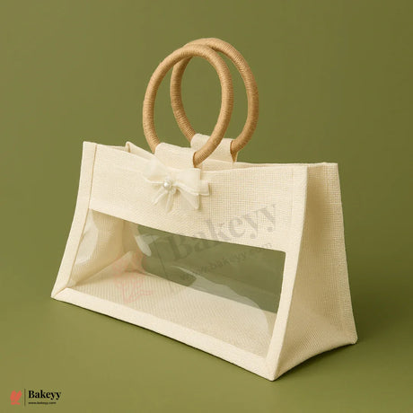 22x10.5x15 cm Beige & Cream Jute Gift Bag with Transparent Window & Round Handles Pack Of 1