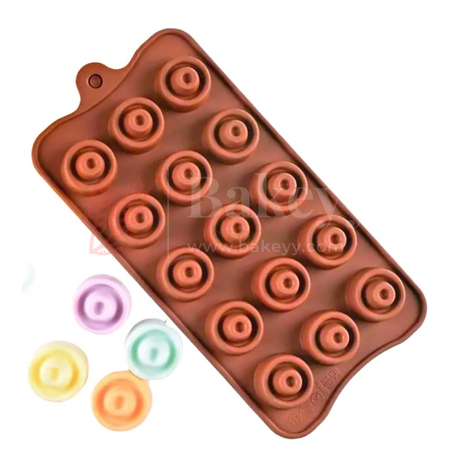15-Cavity | Donuts Shaped Silicone Chocolate Mould | Non-Stick Baking & Candy Making Tray | 1 Piece