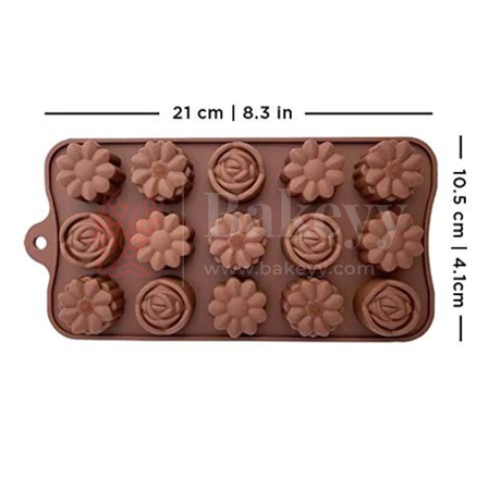 15-Cavity | Floral Shape Silicone Chocolate Mold | Non-Stick Baking & Candy Making Tray | 1 Piece