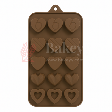 15-Cavity | Heart Shapes Silicone Chocolate Mold | Non-Stick Baking & Candy Making Tray | 1 Piece