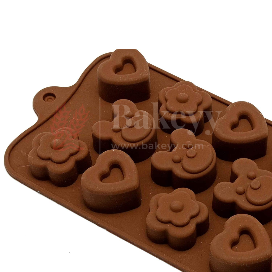 14-Cavity | Multi-Shape Silicone Chocolate Mould | Heart, Flower & Bear Designs | Non-Stick Baking & Candy Making Tray | 1 Piece