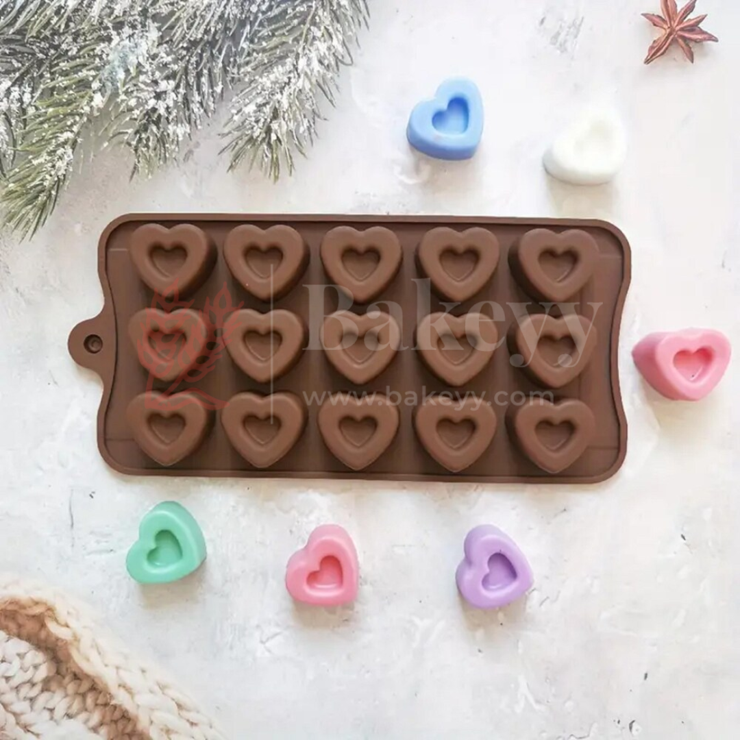 15-Cavity | 3D Heart Shaped Silicone Chocolate Mould | Non-Stick Baking & Candy Making Tray | 1 Piece