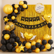 Celebrate your special day in style with this premium Happy Anniversary Decoration Set. Designed in elegant black and metallic gold, this décor creates the perfect festive backdrop for your celebration. The combination of glossy latex balloons, shimmering foil curtains, and themed foil balloons makes it ideal for home parties, halls, or even surprise setups.