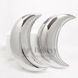 - Elegant crescent moon shape with metallic silver shine.
