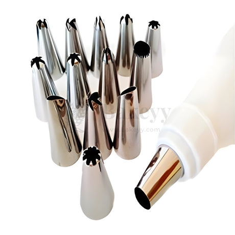 13 Piece Cake Decorating Nozzle Set | Reusable Frosting Piping Bag with Steel Nozzles