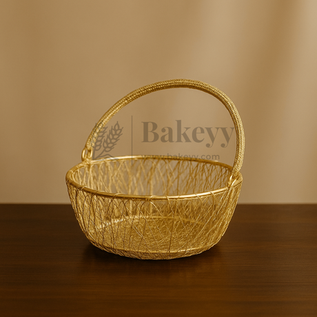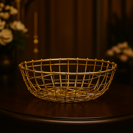 Rs. 230.00Unit price /Unavailable Golden Wire Basket | Elegant Metal Storage Bowl | Gifting and Decorative Purpose | 1 Piece