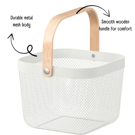 Rs. 500.00Rs. 620.00Unit price /UnavailableLow stock (6 units)24x24x18 cm | White Metal Basket with Wooden handle | 1 Piece
