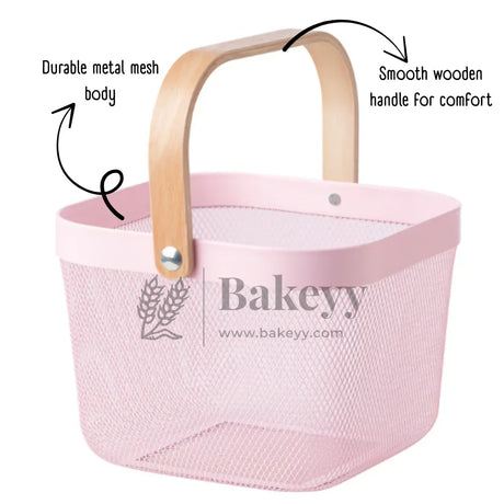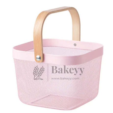 Rs. 500.00Rs. 620.00Unit price /UnavailableIn stock (66 units)24x24x18 cm | Pastel Pink Metal Basket with Wooden handle | 1 Piece