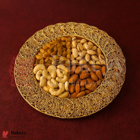 Rs. 780.00Unit price /Unavailable Elegant Gold-Plated Metal Dry Fruit Tray with 6 Decorative Bowls