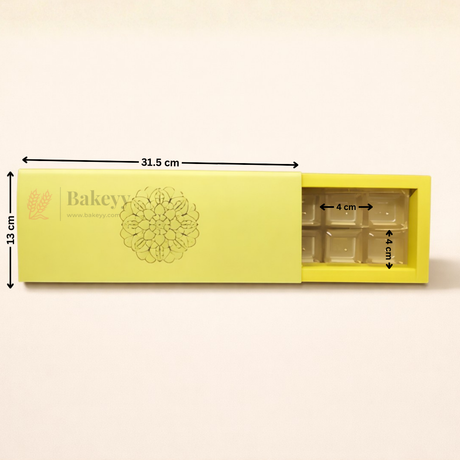 Yellow Sliding Chocolate Box with Gold Cavity | Premium Gift Box for Chocolates | Pack of 10