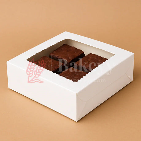 White Colour 4 Brownie Box With Transparent Lid | Pack of 10