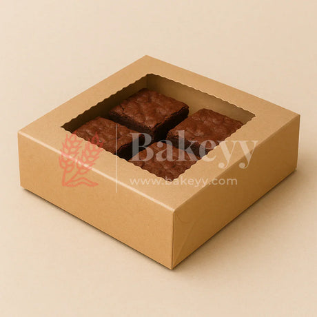 3x3x1.75 inch | 1 Piece Brownie Box Premium Kraft Paper | L Shaped Window | Pack of 10