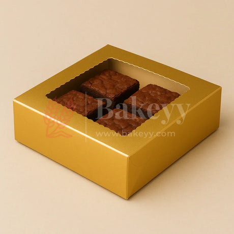 4 Brownie Box | Macron Box | Gold Color | With Window On The Top |
