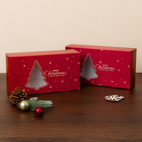 Rectangular Christmas Plum Cake Gift Box | Tree Cut-Out Window Design | Pack of 10