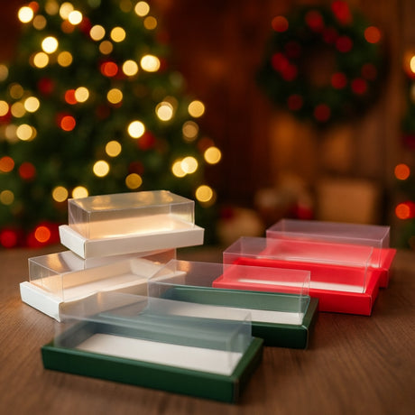Christmas Window Gift Box Set | 6 Festive Designs with Transparent Window | Pack of 12