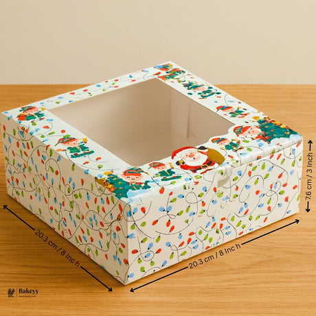 Santa Christmas Cake Box | Festive Holiday Design with Window | Pack of 10