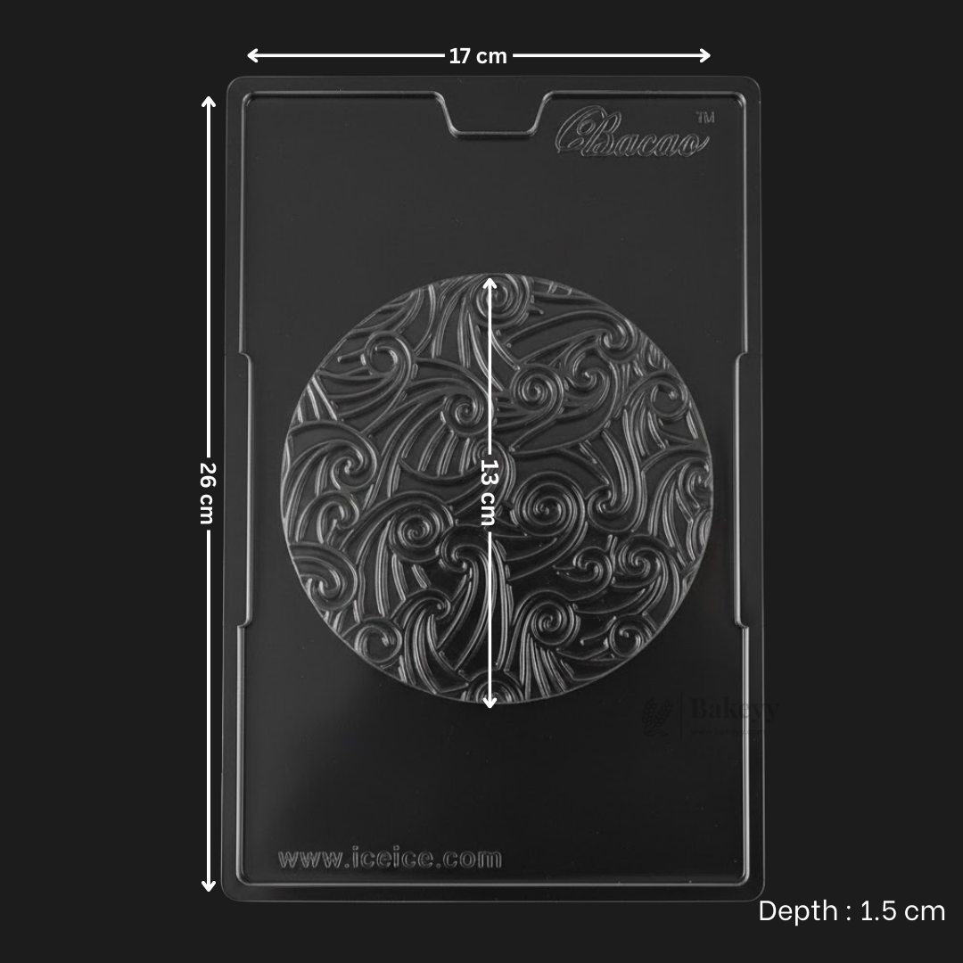 Mould 630 | Florentine Swirl Chocolate Disc Mould | Large Round Designer Chocolate Mould | Food-Grade Plastic (200 g) | Pack of 1
