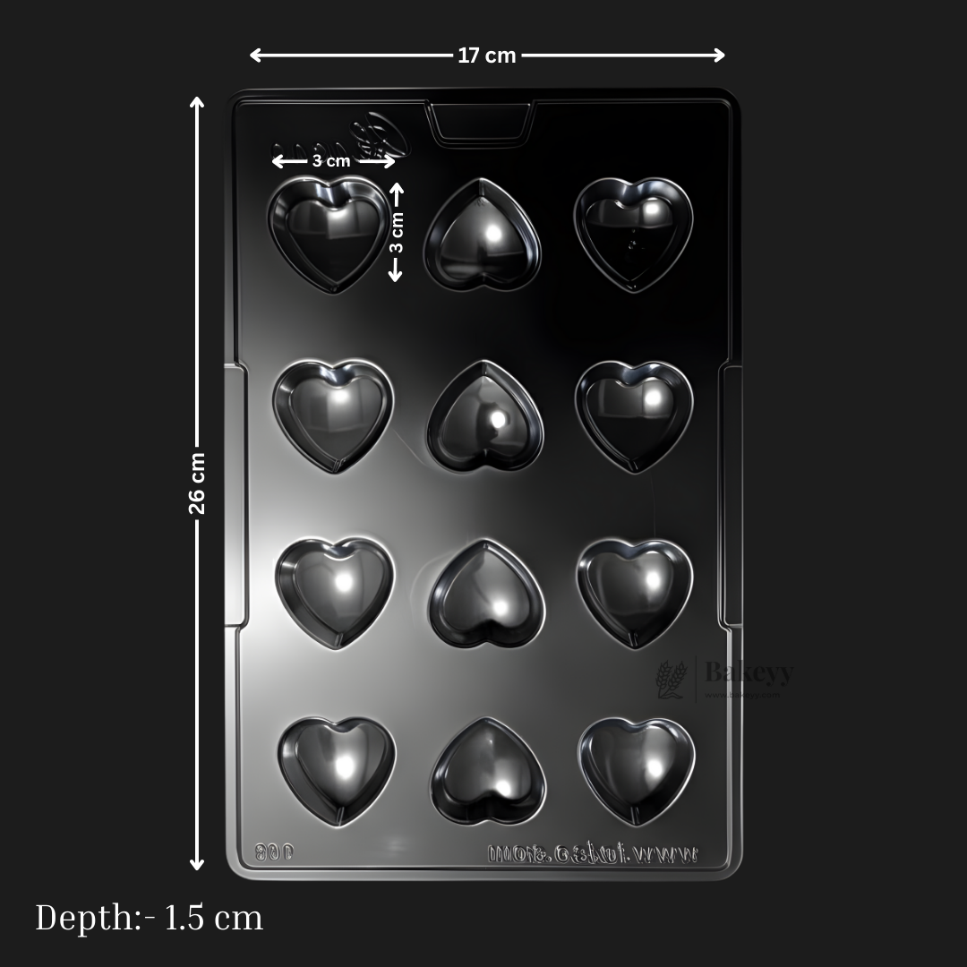 Mould 060 | Heart Shape Chocolate Mould Tray | 12 Cavity Heart Chocolate Mould | Food Grade Plastic Chocolate Mould | Pack of 1