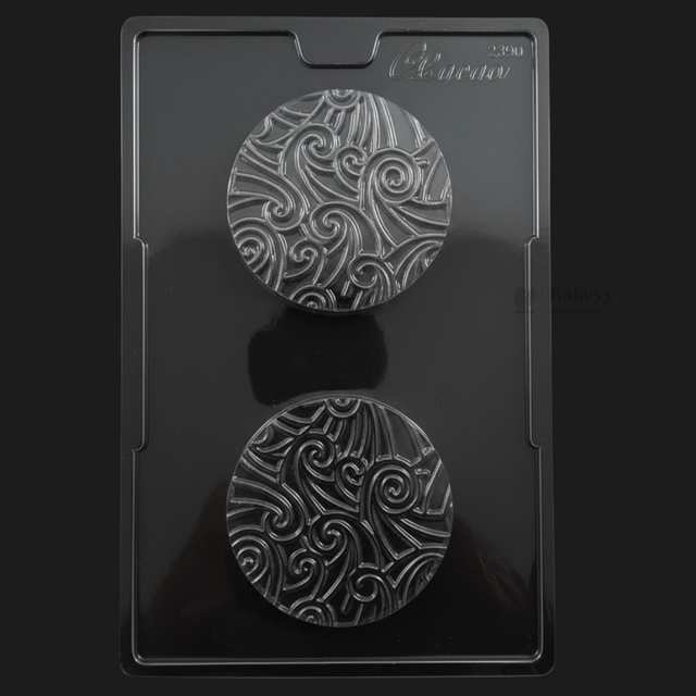 Mould 631 | Round Florentine Chocolate Mould | Embossed Swirl Designer Chocolate | Florentine Style Chocolate Making | Pack of 1 is backordered and will ship as soon as it is back in stock.