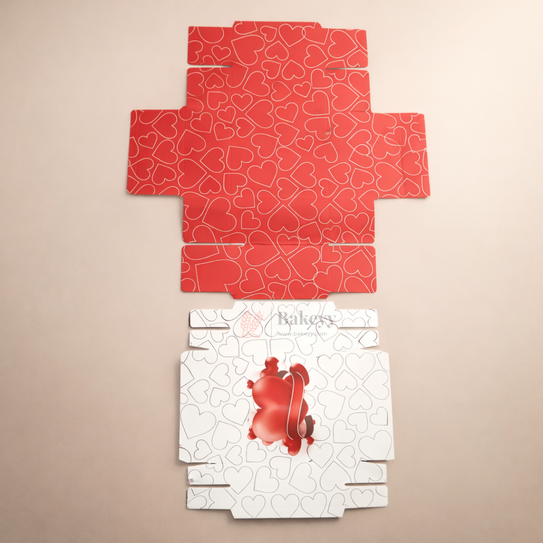 Valentine Chocolate Box with Heart Print Lid | Premium Gift Box for Chocolates, Truffles & Hampers | Red & White | Pack of 10