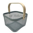 24x24x18 cm | Steel Grey Metal Basket with Wooden handle | 1 Piece