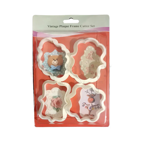 Vintage Plaque Frame Cookie Cutter Set – 4 Pcs | Fondant & Biscuit Cutter for Decorating