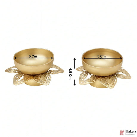 9 cm | 4 Petal Flower-Shaped Metal Plate Diya | 1 Piece