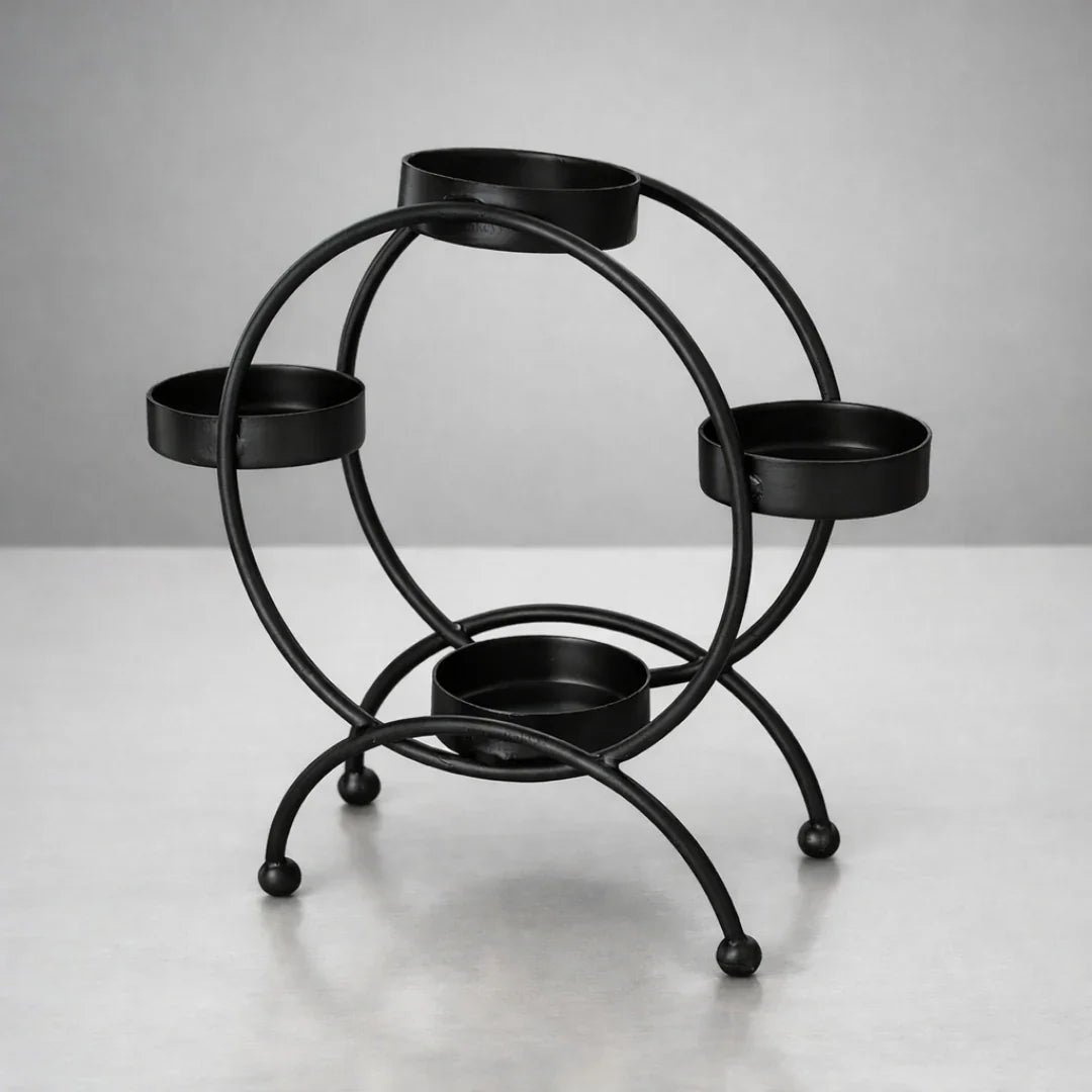 4-Cup Metal Diya Stand | Modern Round Ring Tea Light Holder for Diwali Decor | Pack of 1
