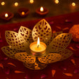 Illuminate your space with elegance using this intricately crafted Golden Lotus Candle Holder. Designed in a beautiful layered lotus pattern with precision-cut detailing, this piece is both decorative and functional.
