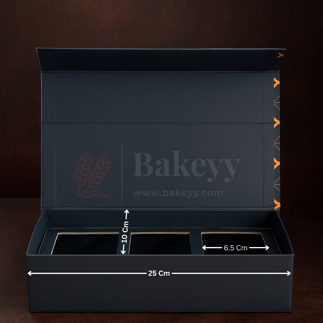 Add a touch of elegance to your gifting with this Premium Hamper Box, designed to hold 3 PET jars of 225ml each. Crafted with a sturdy, luxurious finish, the box features perfectly fitted cavities to keep the jars secure and presentable. Ideal for festive gifting, weddings, or corporate hampers, it combines utility with sophistication.