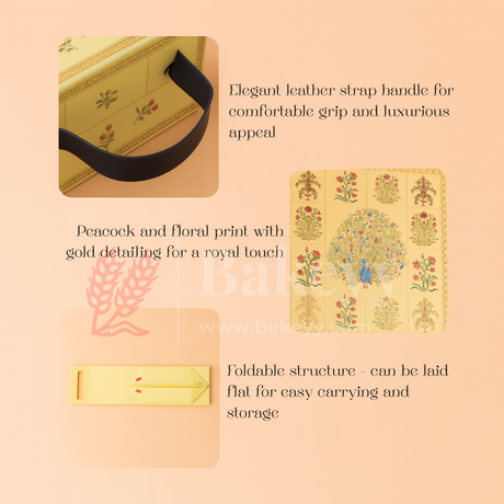 8x8x4 Inch | Yellow Peacock Design Hamper Box with Leather Handle | Pack of 1