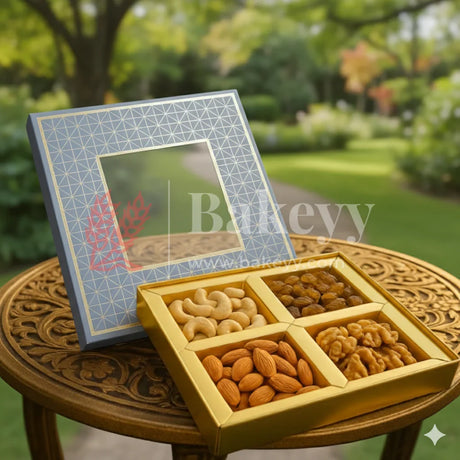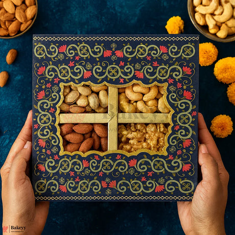 Rs. 100.00Unit price /UnavailableIn stock (37 units) 4 Cavity | Rigid Dry Fruit Box | Elegant Hamper Box with Window Lid | Small | 1 Piece