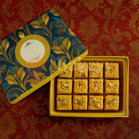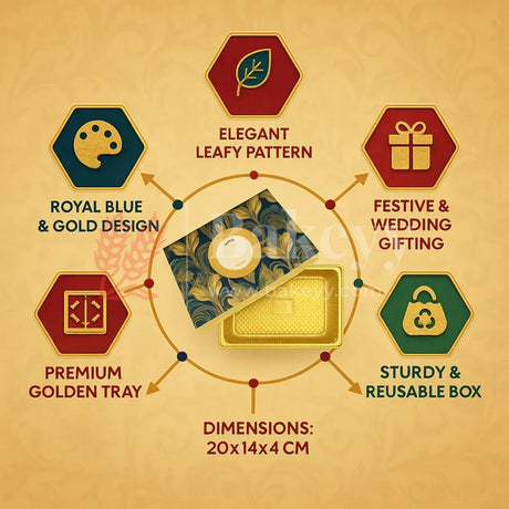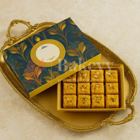 Rs. 450.00Rs. 550.00Unit price /Unavailable One Kg Sweet Box | Royal blue and gold sweet box with Golden tray | Pack of 10