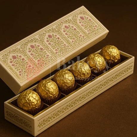 Rs. 200.00Rs. 280.00Unit price /UnavailableIn stock (28 units)6.5x6.5x10 cm | Diwali Chocolate Gift Box – Peach Festive Design | Peach| Pack of 10