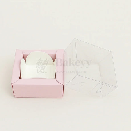 Pink Floral Print 2 Borwnie Box With Transparent Lid | Pack of 50