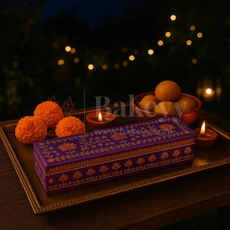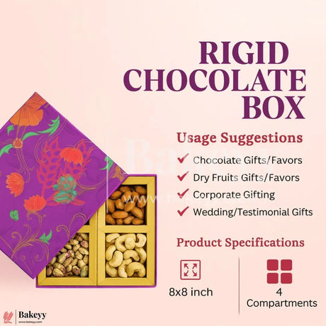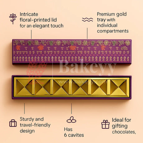 6 Cavities | Rigid Chocolate Box | Floral Print | Sweet box | Purple | 1 Piece