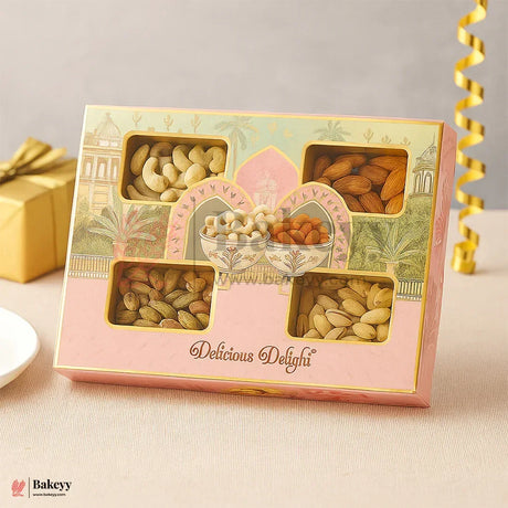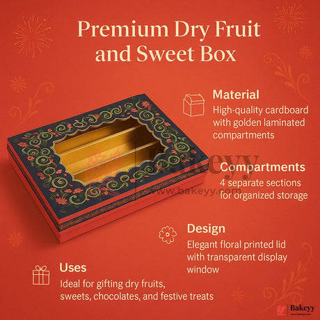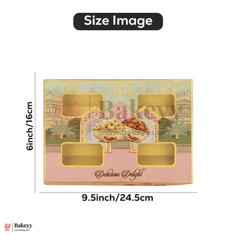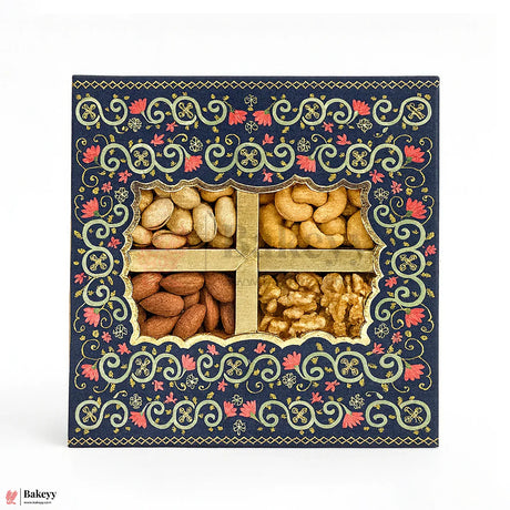 4 Cavity | Rigid Dry Fruit Box | Elegant Hamper Box with Window Lid | Big | 1 Piece