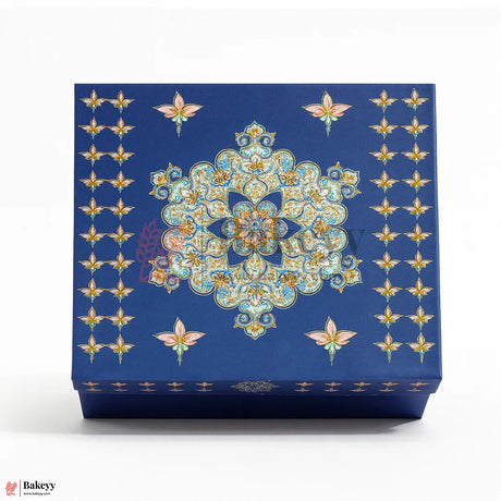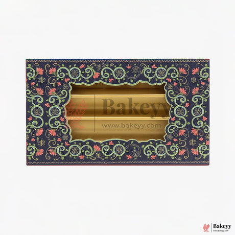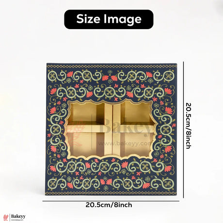 Elegant Navy Blue Floral Sweet Box with Cavities | Pack of 10