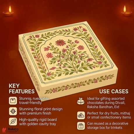 6 Cavities | Rigid Chocolate Box | Floral Print | Sweet box | 1 Piece